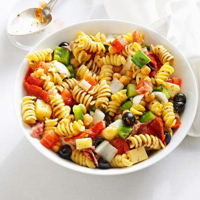 This colorful antipasto salad is a tasty crowd-pleaser. Guests love the homemade dressing, which is a nice change from bottled Italian. — Linda Harrington, Windham, New Hampshire