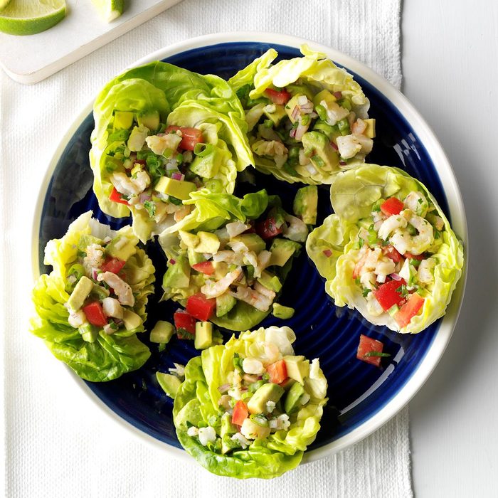 This salad can be served as a cool and satisfying dinner or lunch. The delicious taste and smooth texture of avocados mixed with the crisp shrimp salad is heavenly. —Teri Rasey, Cadillac, Michigan