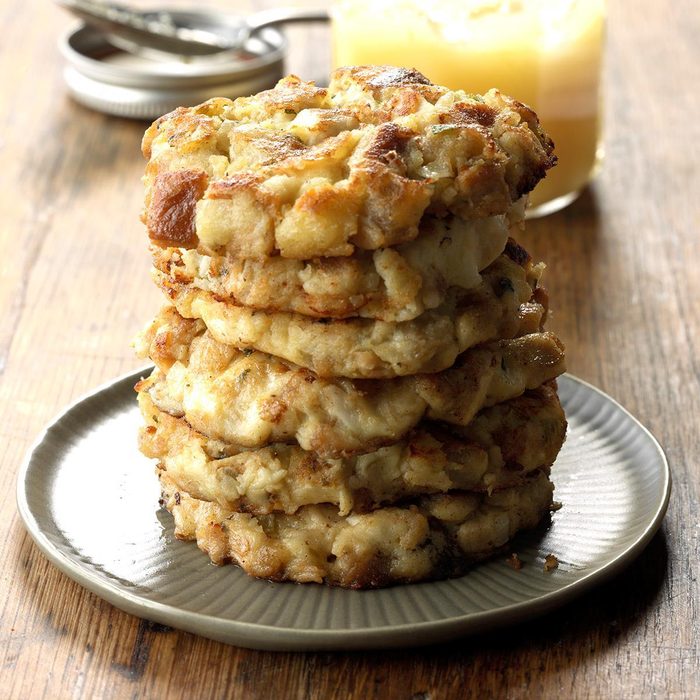 These delicious patties can be a little finicky if your mashed potatoes and stuffing are wet, so make a test patty first. If it falls apart while cooking, add a little flour to the mixture to absorb the excess moisture. It can also be helpful to chill the mixture in the fridge before frying.