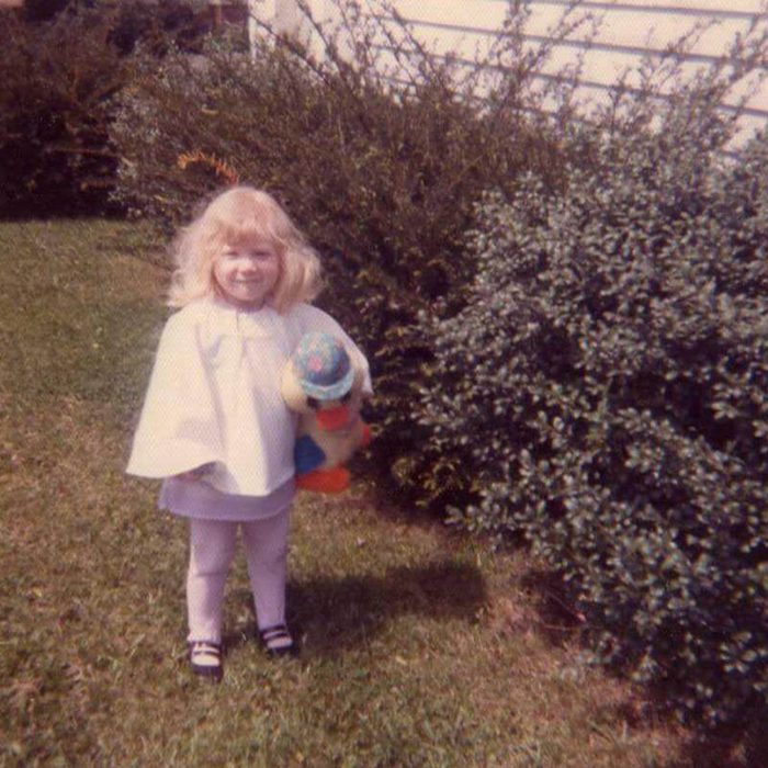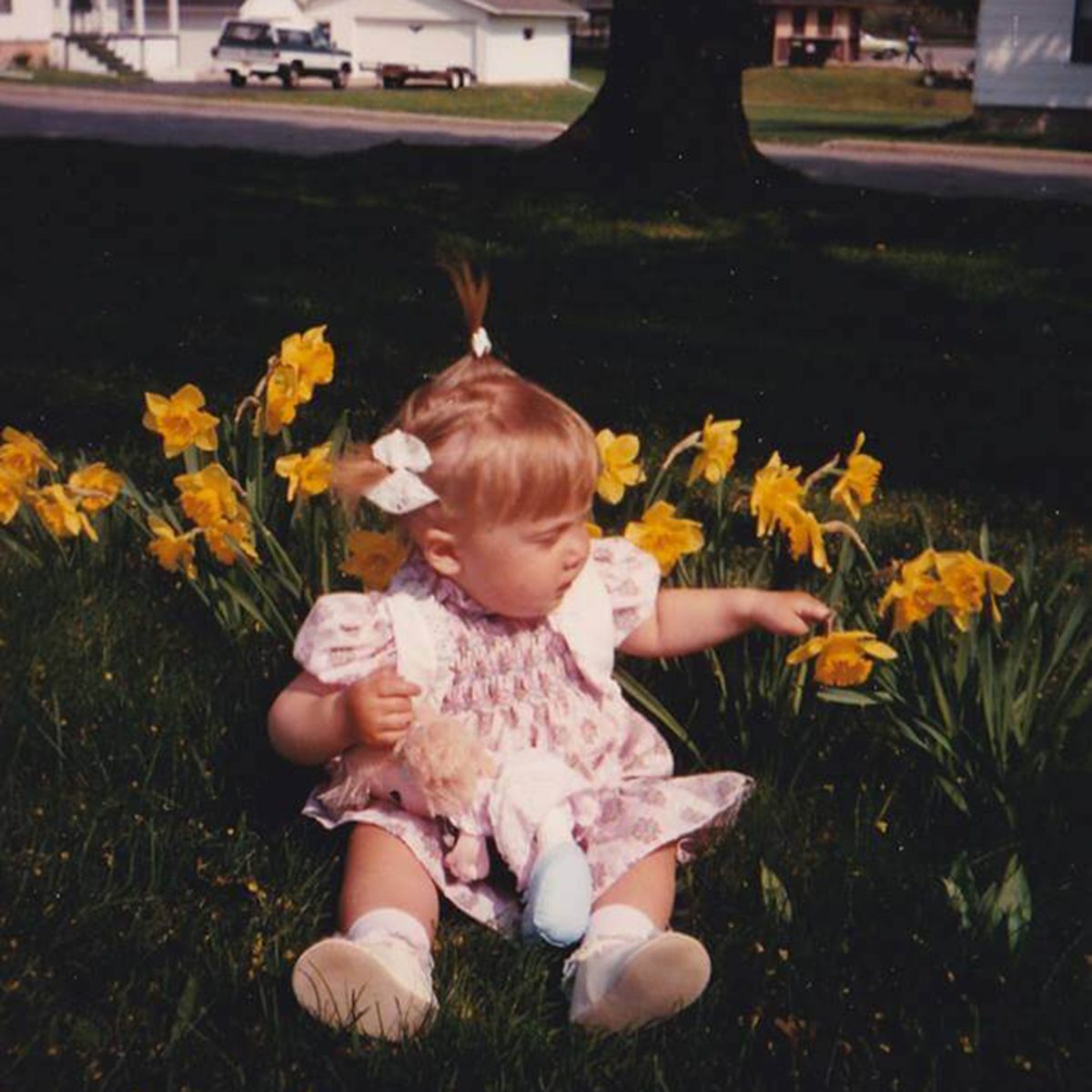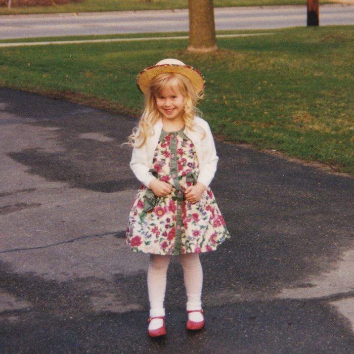 On Easter morning, what little girl isn’t in a floral dress and hat? We love this ’90s version perfect with those adorable pink shoes.