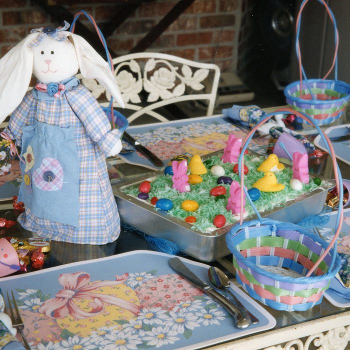 Community Cook Joan Hallford shows off her Easter tablescape from back in ’98. Check out that adorable cake! Find more pretty Easter desserts here—perfect for sharing with friends and fam.