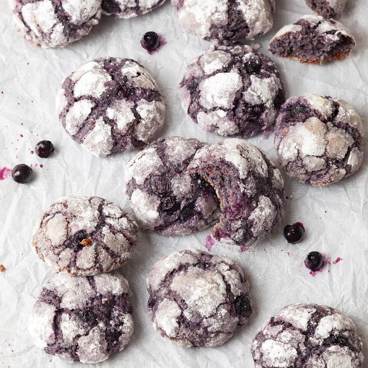 These blueberry crinkle cookies are stunning, thanks to a summery blue hue peeking out from a crackled, confectioners' sugar surface.
