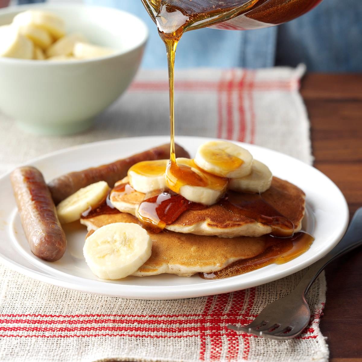 The whole wheat flavor really comes through in these hearty pancakes. They taste amazing with a light touch of maple...