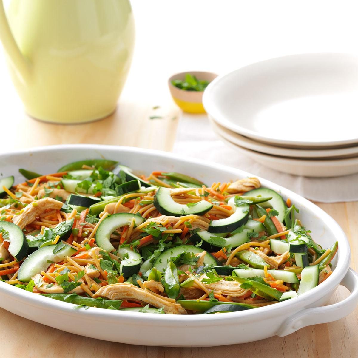 This spicy Asian sausage and noodle salad is equally good for lunch or a potluck. —Denese Johnson, Chico, Texas