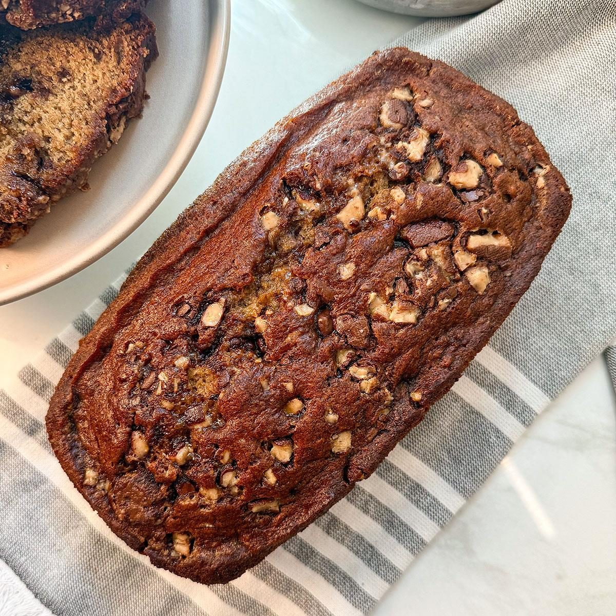 This maple bourbon banana bread brings all the extra fall drama with it. It's rich and moist, infused with warm bourbon and sweet maple syrup and sprinkled with melty pockets of chocolate toffee that caramelize as it bakes. Every bite is a perfect storm of cozy, boozy and indulgent, making it just as welcome at a brunch table as it is for a late-night treat. —Elise Jesse, Cincinnati, Ohio