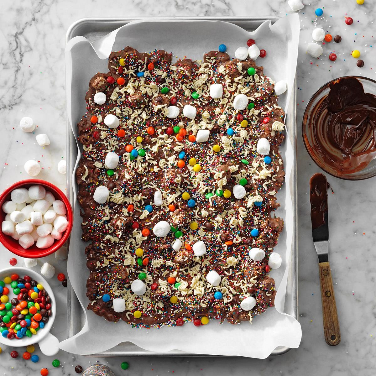 Fans of tiger butter fudge will revel in this version that's very similar to bark candy. The chocolate swirls are...