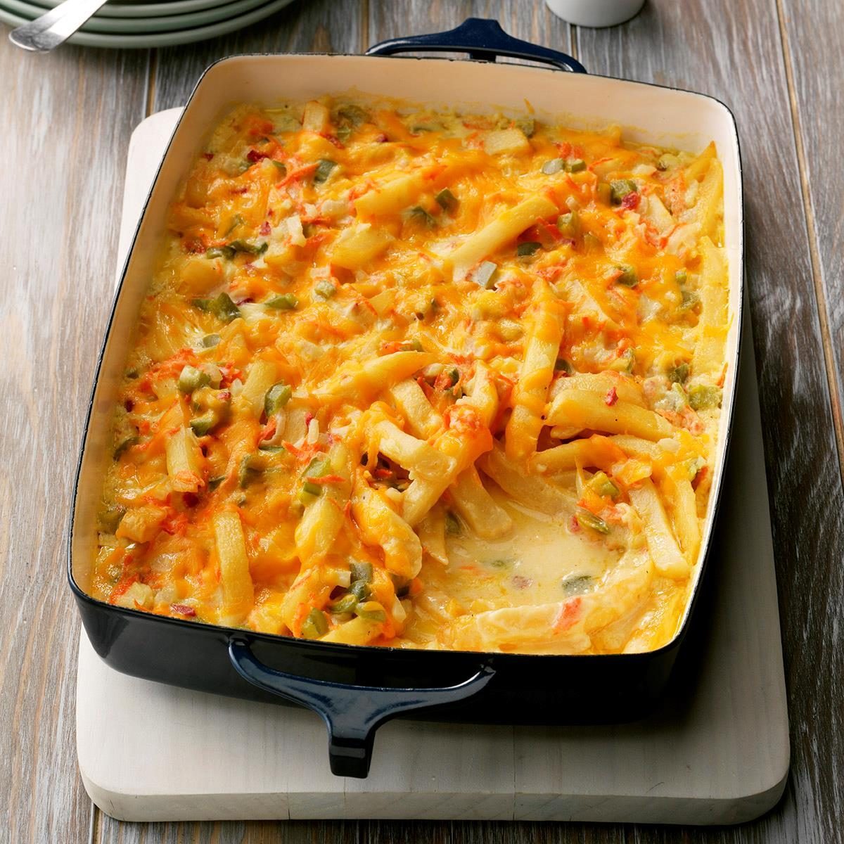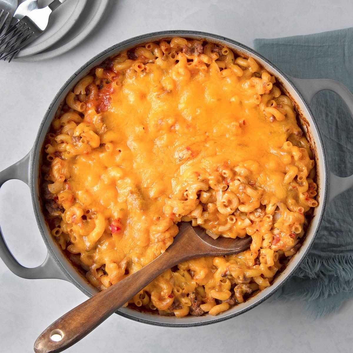 When the weather's too chilly to grill, I whip up a big pot of this cheesy pasta. Believe it or...