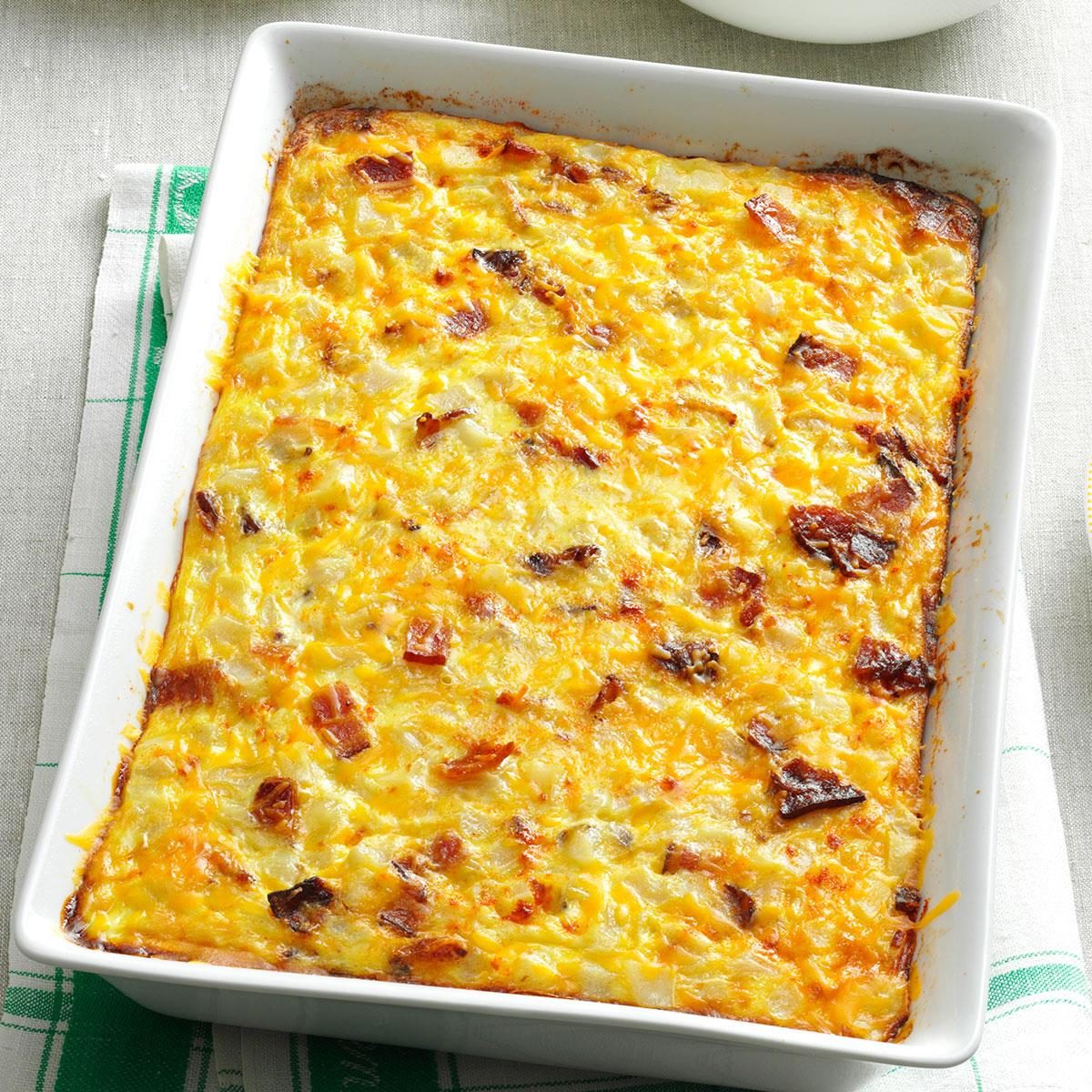 A package of frozen potatoes makes this hash brown egg casserole simple to prepare. Featuring bacon and cheddar cheese, this...