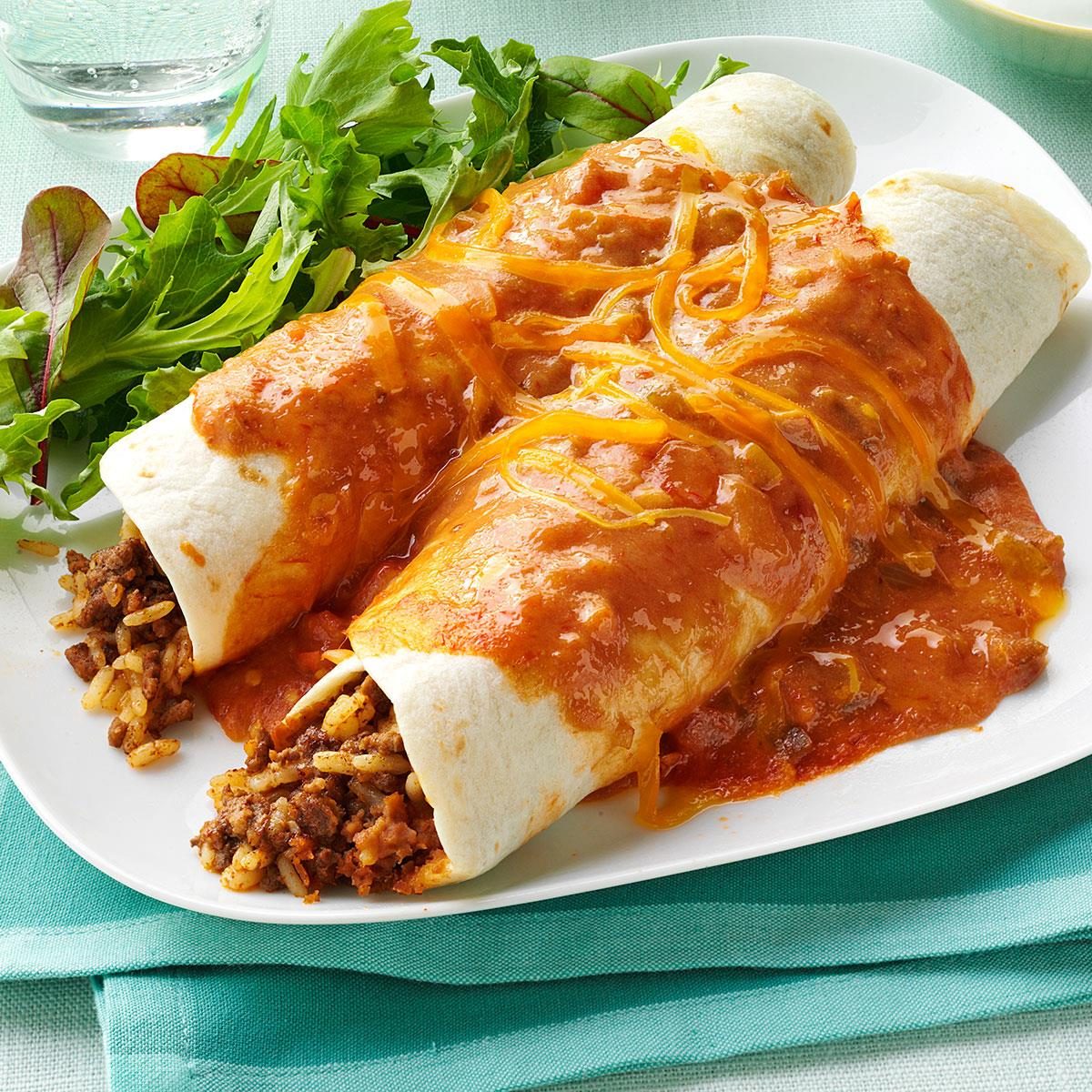 Slathered with a well-seasoned red chile sauce, tortilla-wrapped enchiladas rojas stuffed with chicken make an exceptionally flavorful meal.