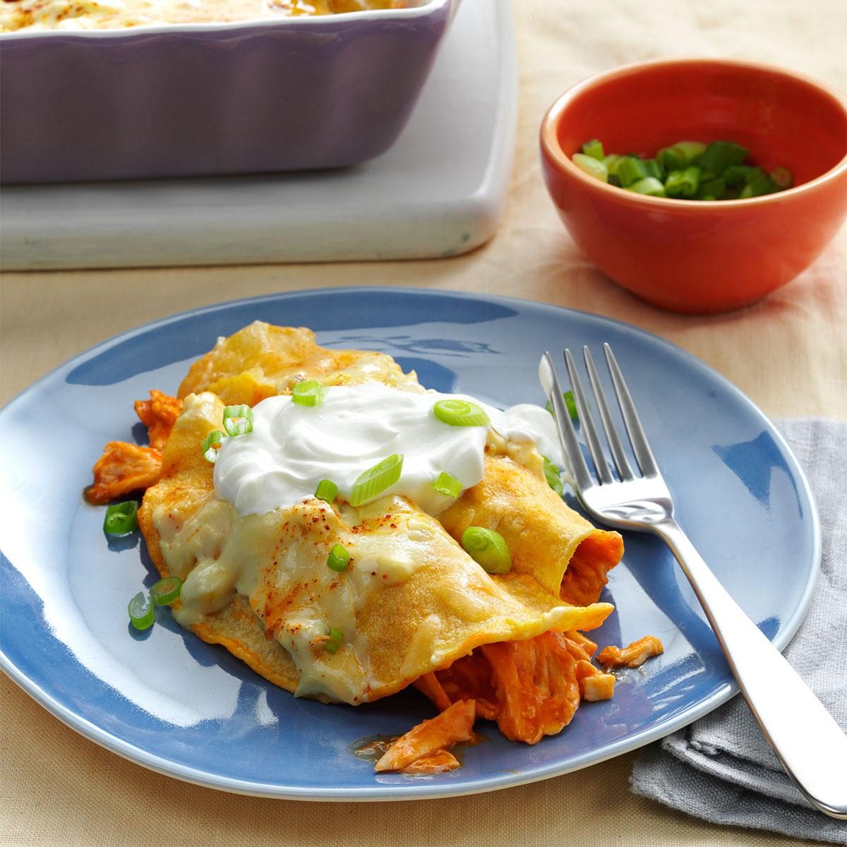This is not a drill. These buffalo chicken enchiladas—filled with tender rotisserie chicken, lots of cheese and, of course, Buffalo...