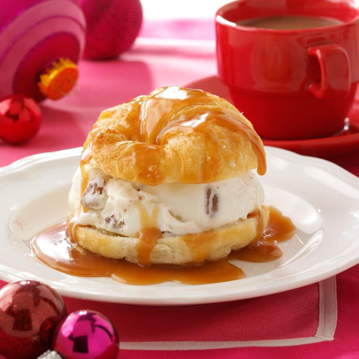 Croissants are a super quick stand-in for cream puffs in this luscious treat. The from-scratch caramel sauce couldn’t be easier...