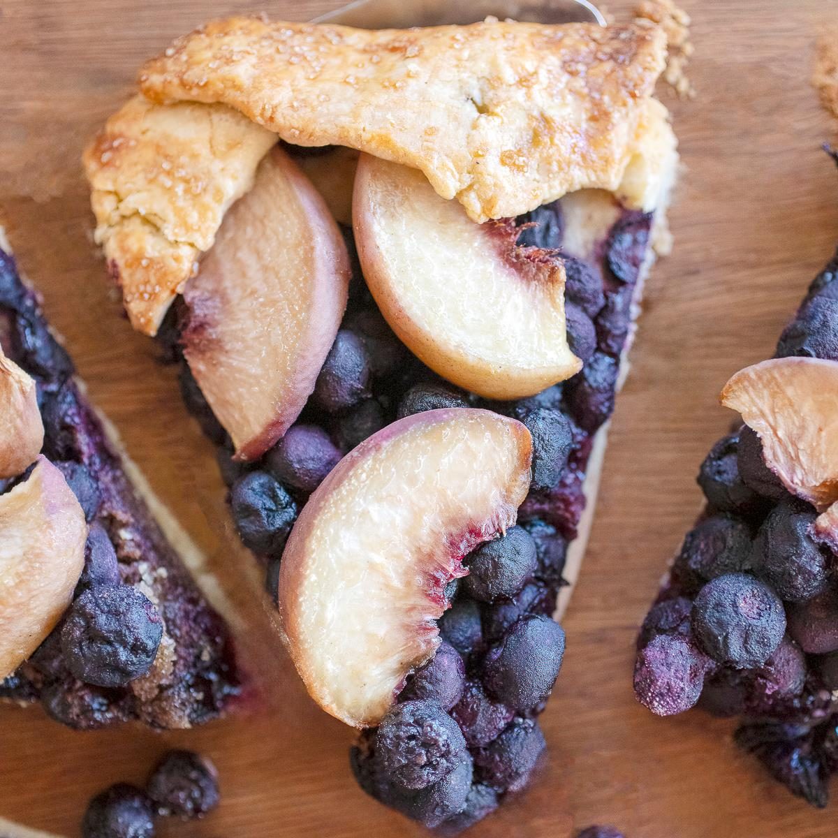 Experience the delightful simplicity of a rustic French galette with our peach and blueberry version. Its flaky, buttery crust and...