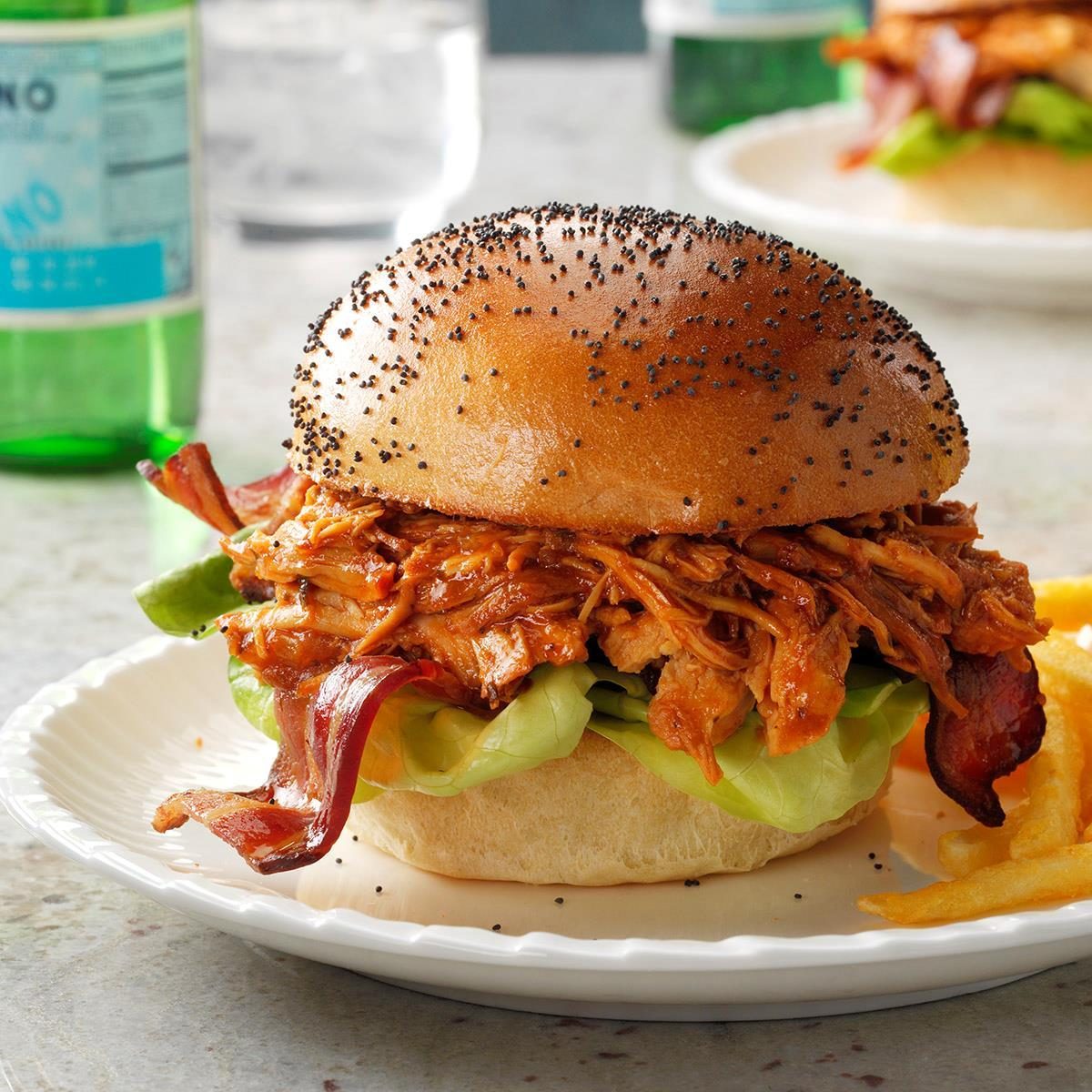 BBQ Bacon Pulled Chicken Sandwiches
