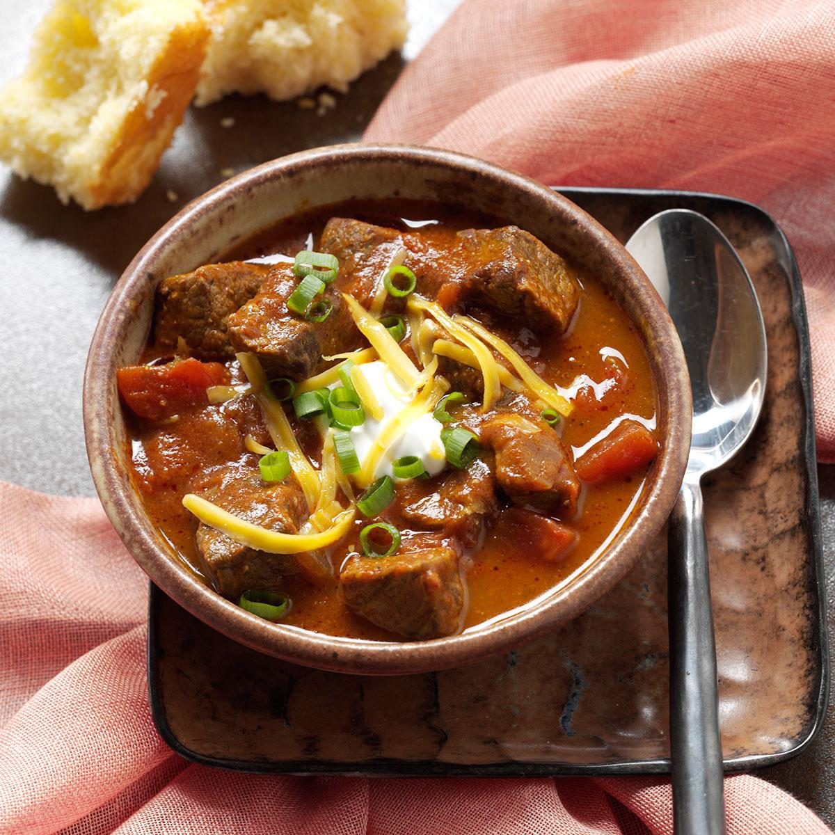 This full-flavored, medium-hot, Texas-style chili tastes even better the second day. —Michelle Smith, Running Springs, California