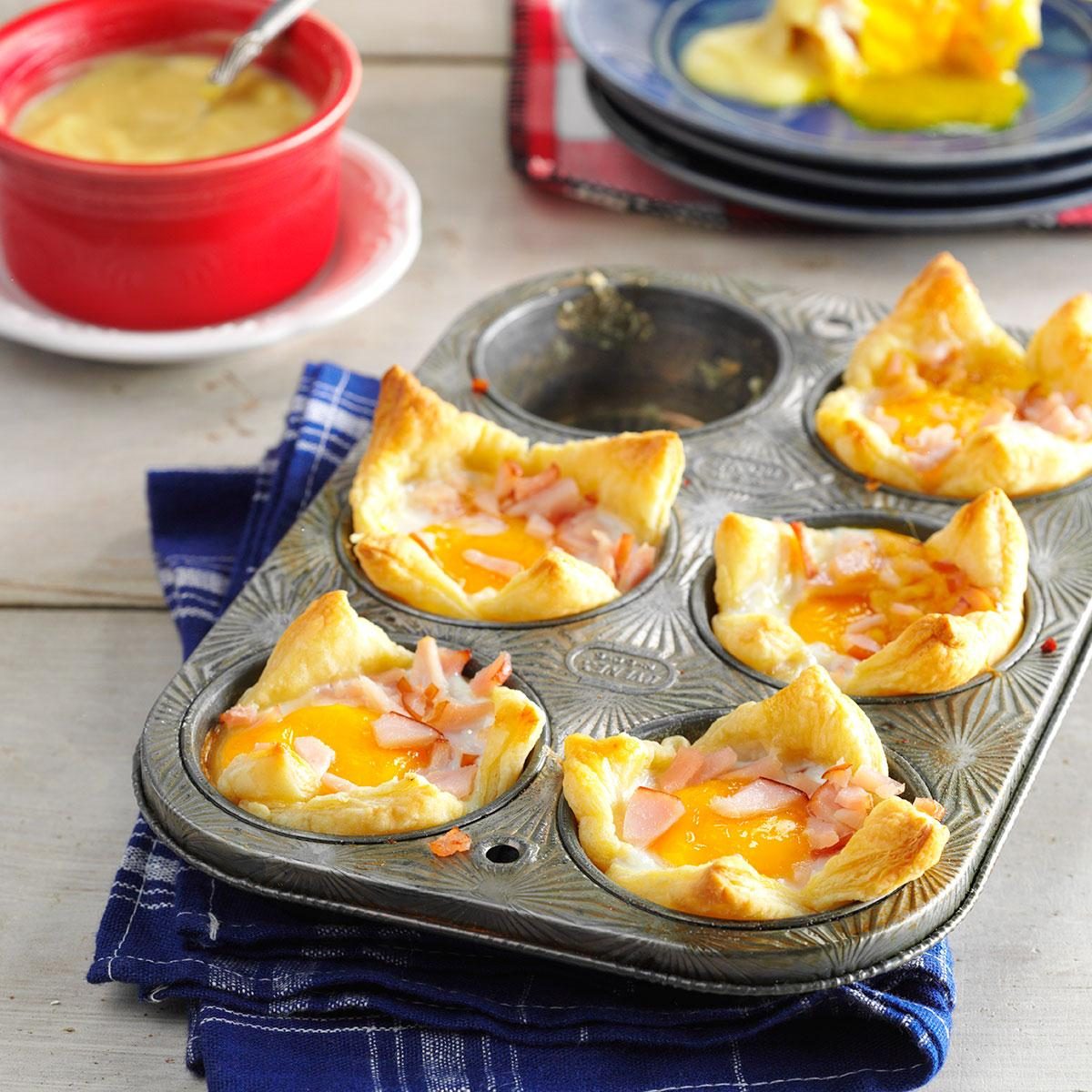 A little puff pastry turns Canadian bacon and eggs into a tasty update on eggs Benedict. We use a packaged...