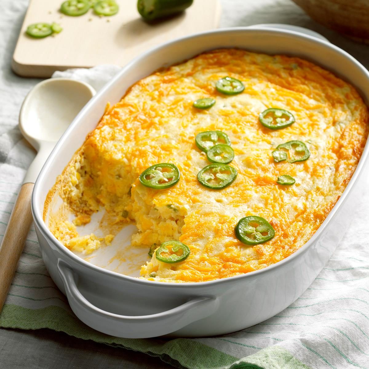 Homey and comforting, this custardlike side dish is a much-requested recipe at potlucks and holiday dinners. The jalapeno adds just...