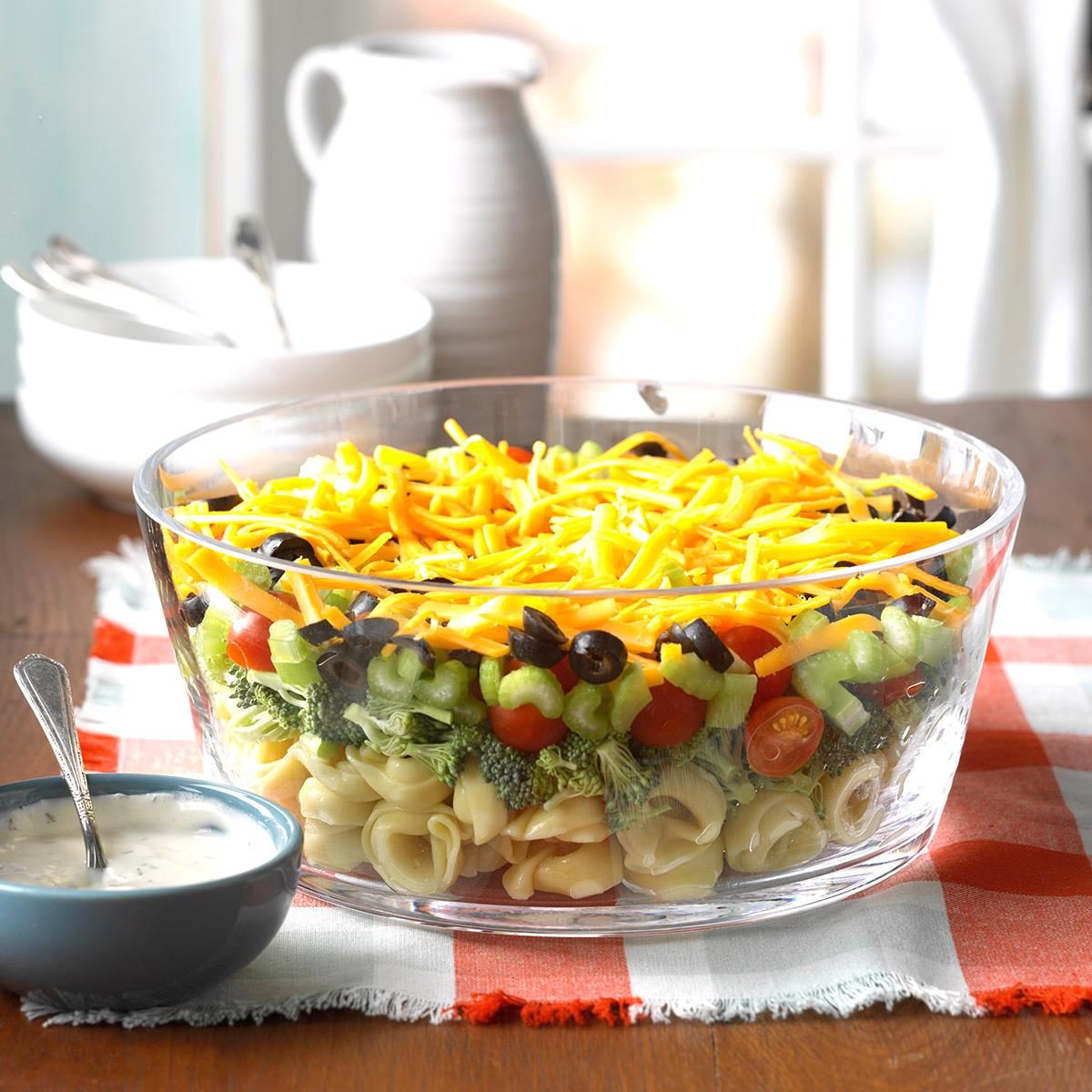 Tortellini and a Parmesan dressing give this layered salad an unexpected twist. It's great for a potluck. —Dennis Vitale, New...