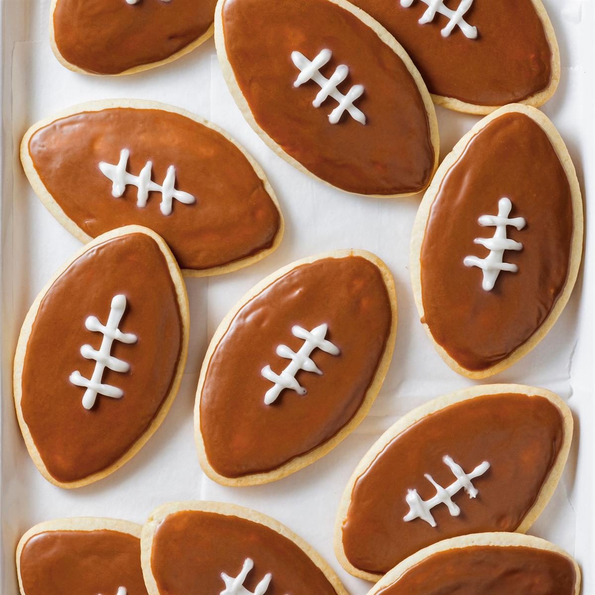 These football cookies are the ultimate game day dessert. Thick sugar cookies are baked just until set and then decorated...