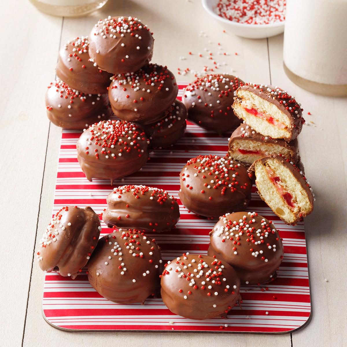 After baking, these buttery thumbprint cookies are filled with cherry liqueur icing and sprinkled with finely chopped maraschino cherries. The...