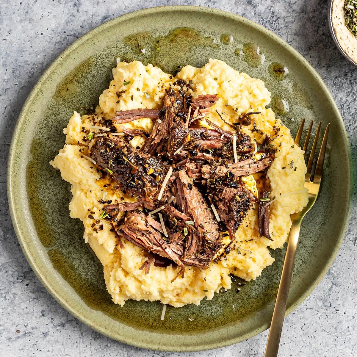 Our beef with polenta recipe is a major upgrade from your basic meat and potatoes. The slow-cooked rosemary and garlic-spiked...