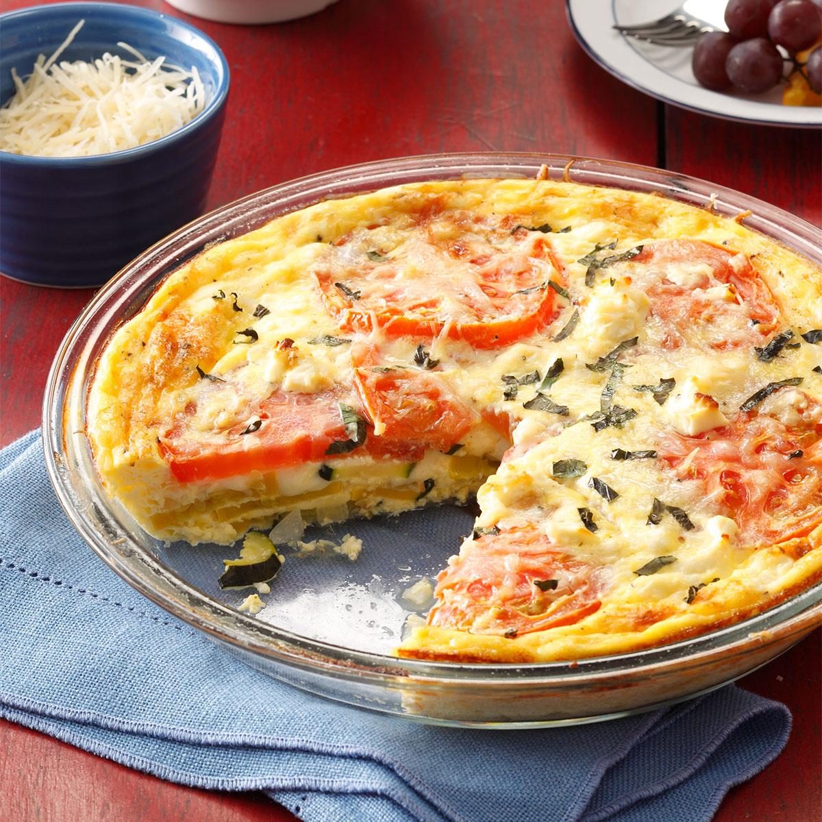 I created this frittata recipe one day to use up some fresh yellow squash, zucchini and tomato. It's so easy...
