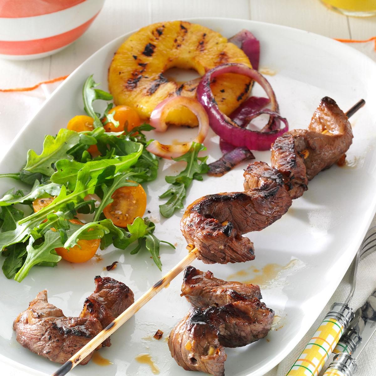 When these flavorful skewered steaks are sizzling on the grill, the aroma makes everyone around stop what they're doing and...