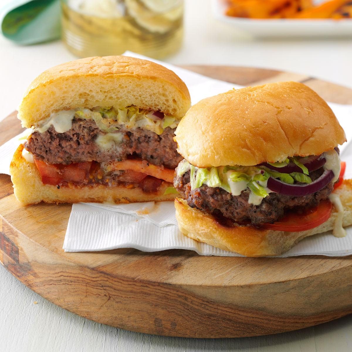 My husband and I like to make up recipes together. The sauce for this juicy burger tastes even better when...